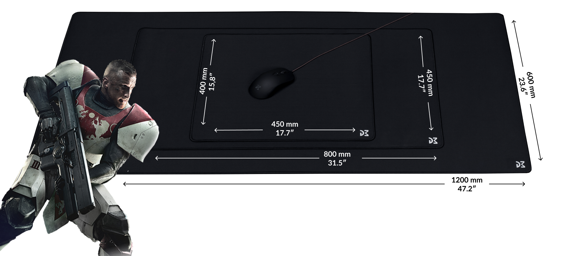 Незалежно від налаштувань ноутбука або мишки, наш DM PAD XXL не обмежує Вас! Це один з небагатьох килимків для геймерів шириною більше ніж 1 м. Розміри 1200x600мм дають Вам повну свободу в просторі і діях. Ви не повинні думати про те, де закінчується Ваш ігровий килимок, і можете повністю зосередитись на грі.