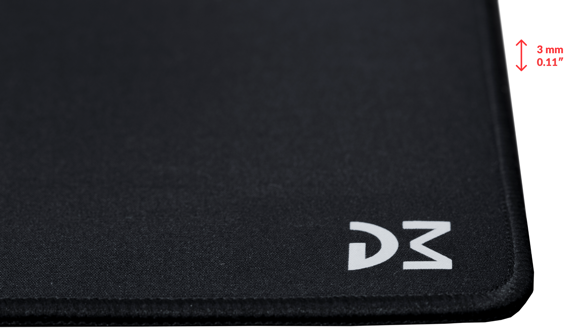 Ми запитали у геймерів, якою має бути ідеальна товщина ігрового килимка. Адже більшість пропозицій на ринку варіюються від 1 до 7 міліметрів. Ми з'ясували, що ідеальна товщина для міцності та еластичності знаходиться десь посередині. Саме тому у DM PAD XXL вона складає оптимальні 3мм.